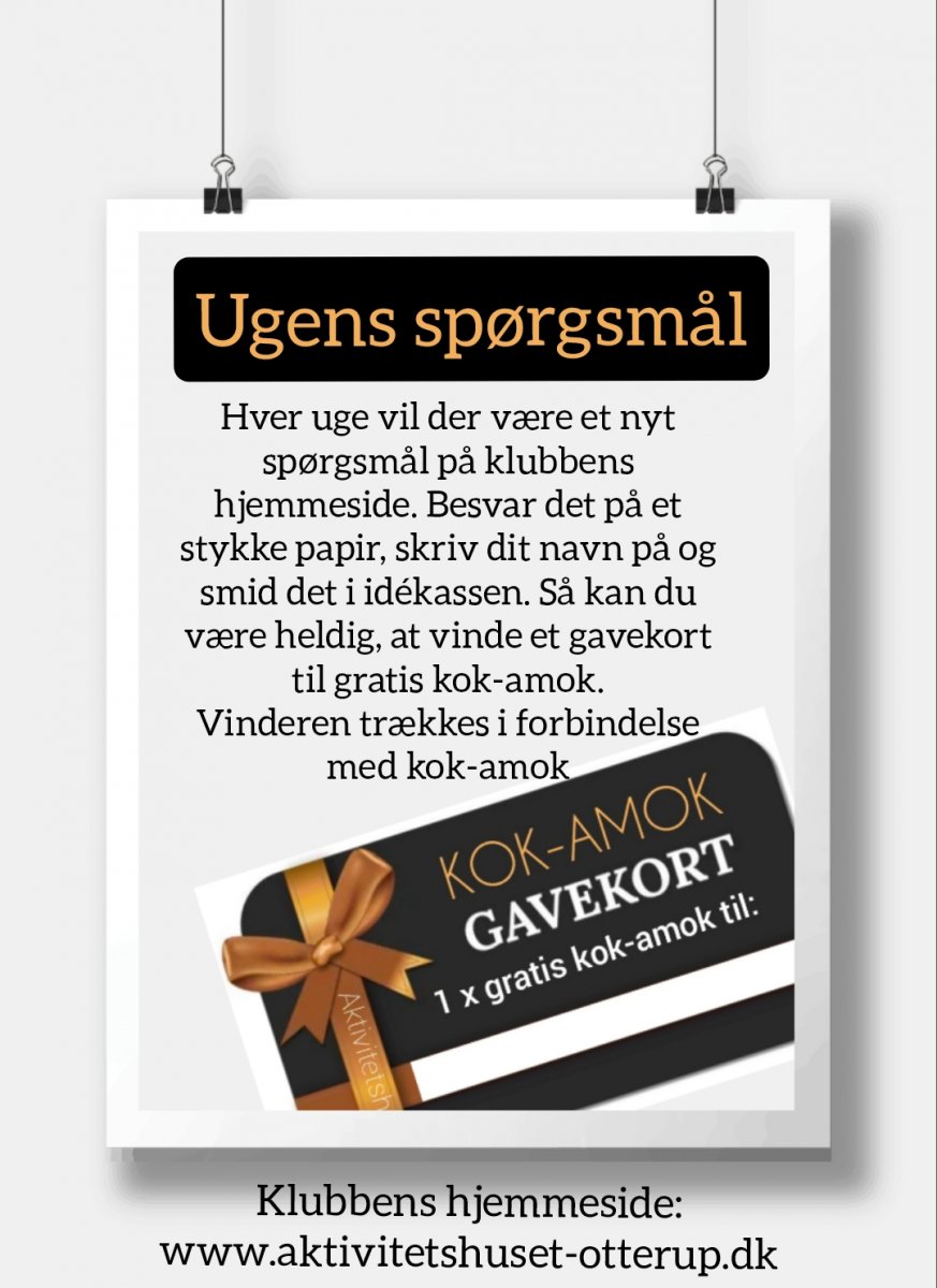 Vi er også meget åbne for HELT nye forslag, hvis du går og har gode idéer til en uafprøvet aktivitet her i klubben.